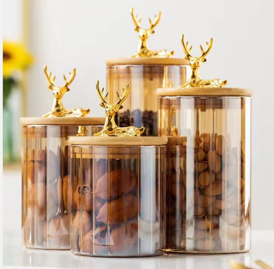 Modern Hand Blown Glass Storage Jar with High Quality Lid...
