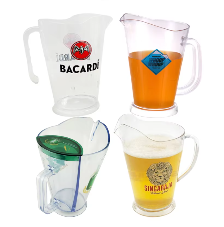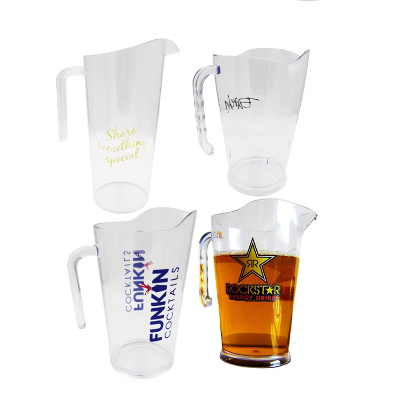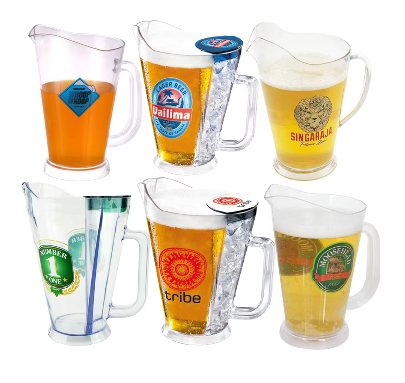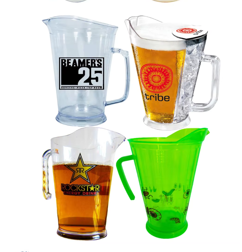 1000ml 1200ml 1800ml Plastic Beer Jug Pitcher Bar / Restaurant Beer Jug with Handle and Customized Printed logo