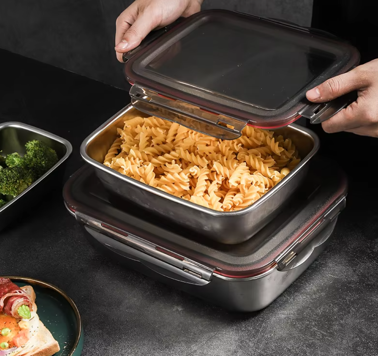 Microwavable Stainless Steel Meal Prep Lunch Box Stackable Freezer Oven Safe Food Storage Container with Leftovers Lids