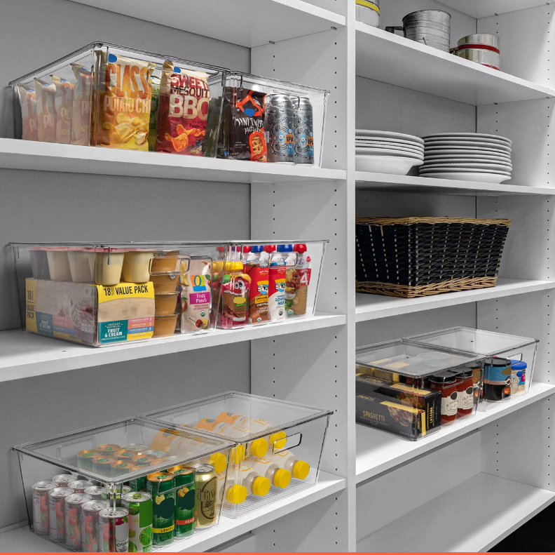 Transparent Multipurpose Bins Kitchen Pantry Fridge Container Plastic Deep Storage Bin Box with Lid