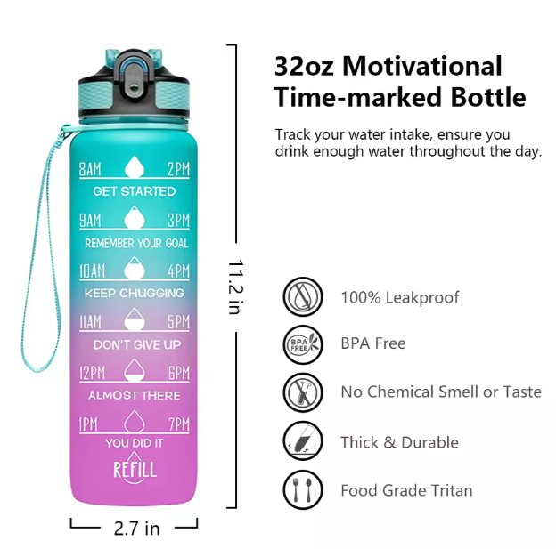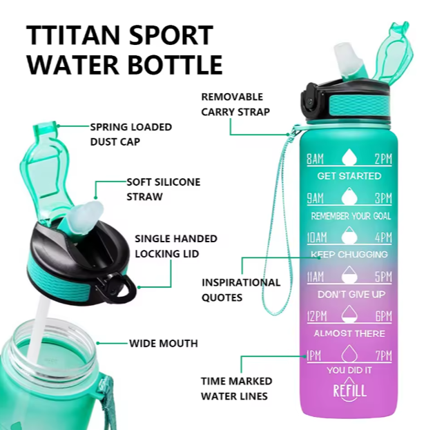 Amz Top Seller Plastic PC Water Jug Bottle Custom LOGO 1000ml Motivational Tritan 1L Sports Tritan Water Bottle