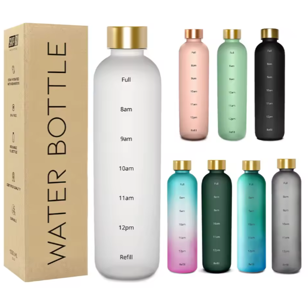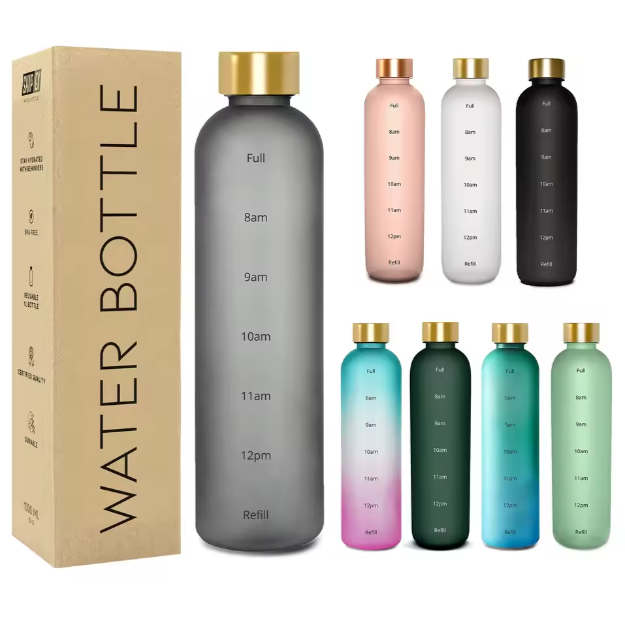 1000ml Transparent Plastic Water Bottle With Gradient Color Tritan PP Water Bottle With Scale