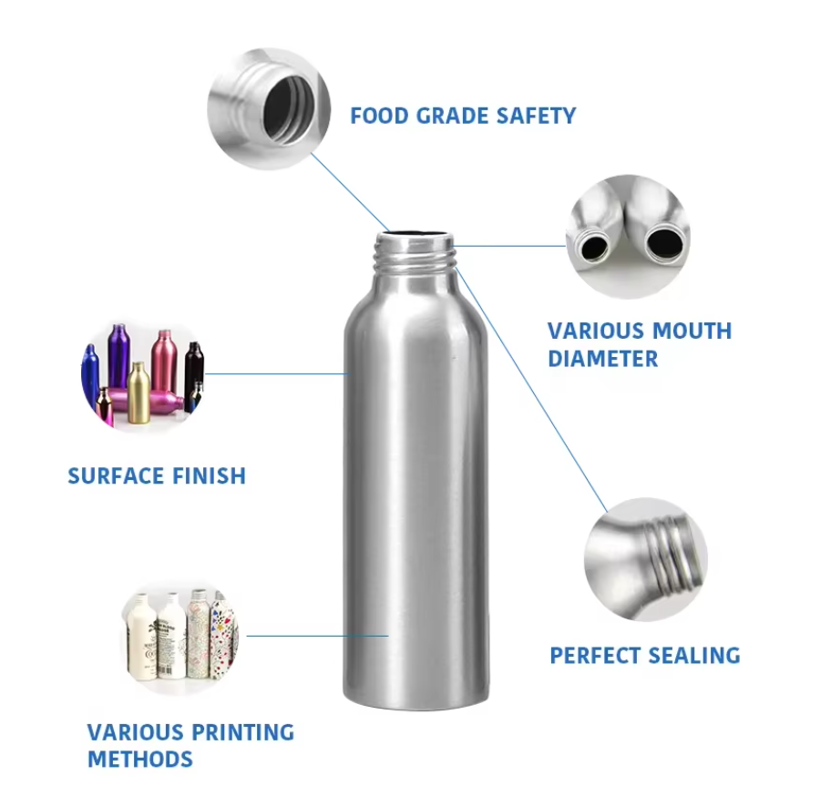 Hot Selling Customize Metal Cans Bottles 250ml 750ml 1 Liter Aluminum Bottle With Aluminum Screw Lid